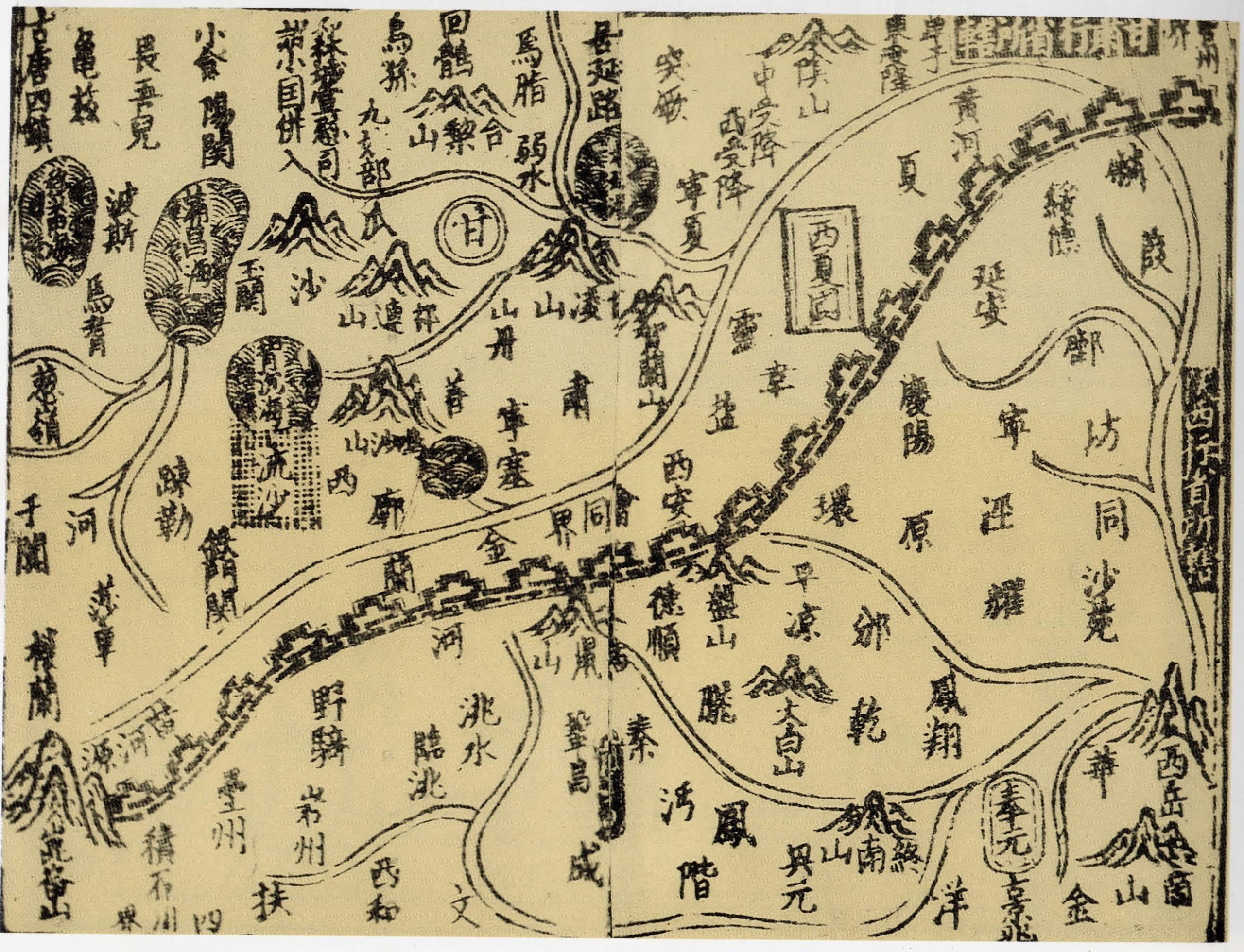 元至顺间年间(公元1330—1332年),在翻刻南宋陈元靓撰《新编纂图增类群书类要事林广记》时,增入了《甘肃陕西行省所辖图》这幅图。