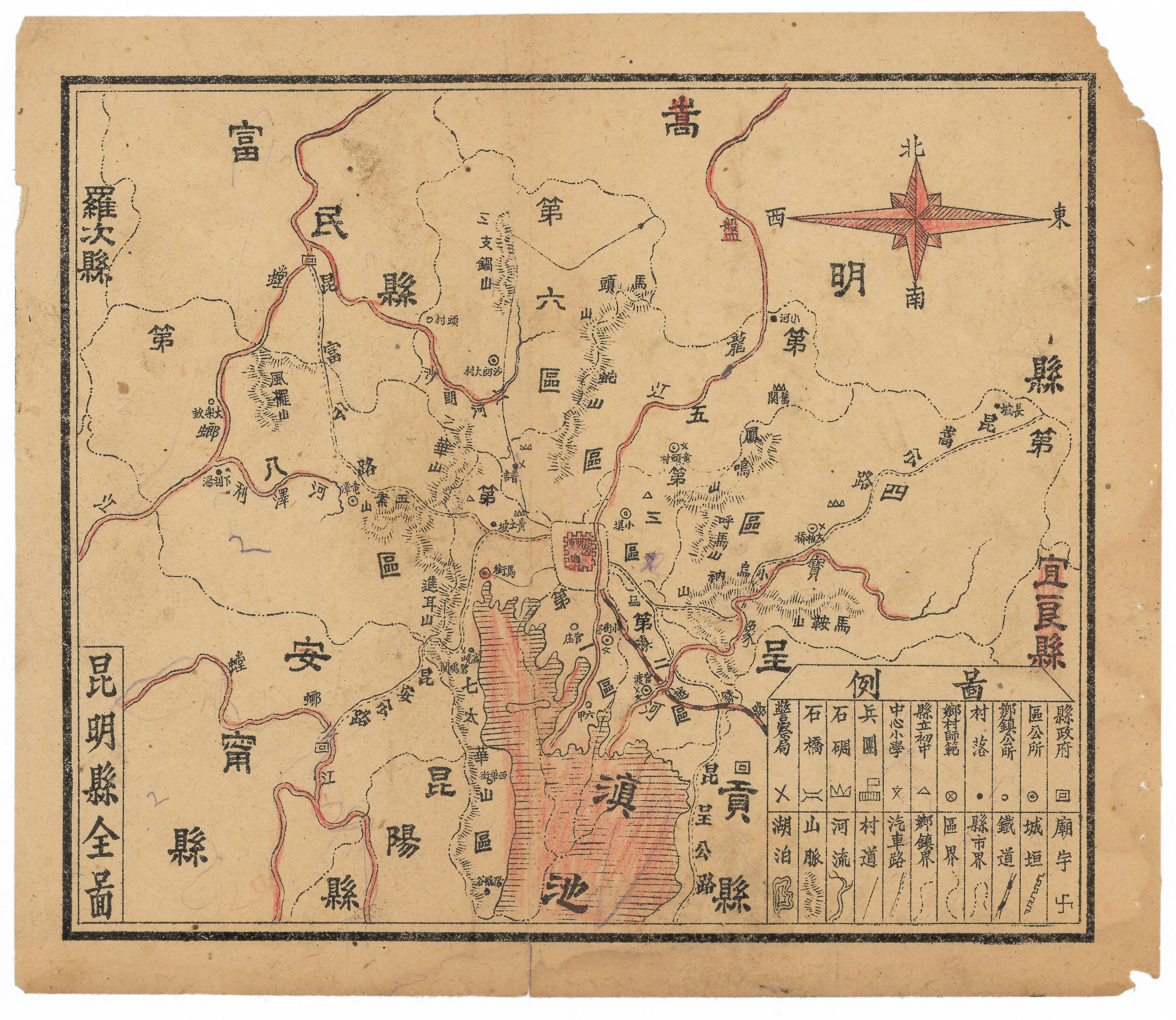 此《昆明县全图》为1912年昆明县域地图,地图上其他信息较少,发行者未知,待查证后在补充。